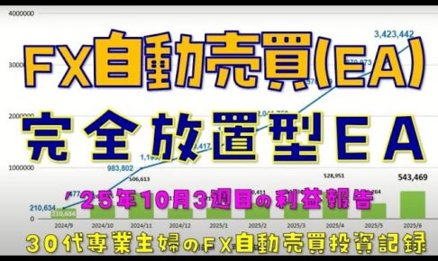 ’25年10月第3週の収益報告動画になります。 使用しているFX自動売買システム(EA)は、ユニバースEAというものを使っています。 ユニバースEAをご利用希望の方はこちらから申請が可能です。 申請時にクーポンコードを聞…