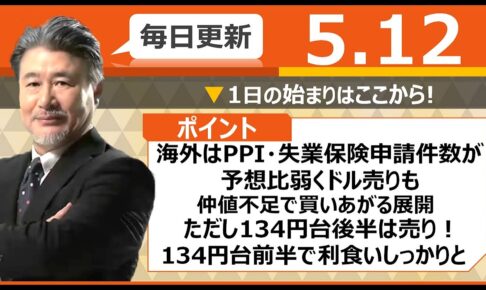 【FX|相場分析】 海外はPPI・失業保険申請件数が予想比弱くドル売りも、仲値不足で買いあがる展開。ただし134円台後半は売り!134円台前半で利食いしっかりと。 2023/5/12(金)