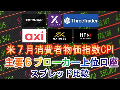 【海外FX】主要6ブローカーの上位口座で米消費者物価指数CPI指標時スプレッド比較【2023年7月12日米CPI】