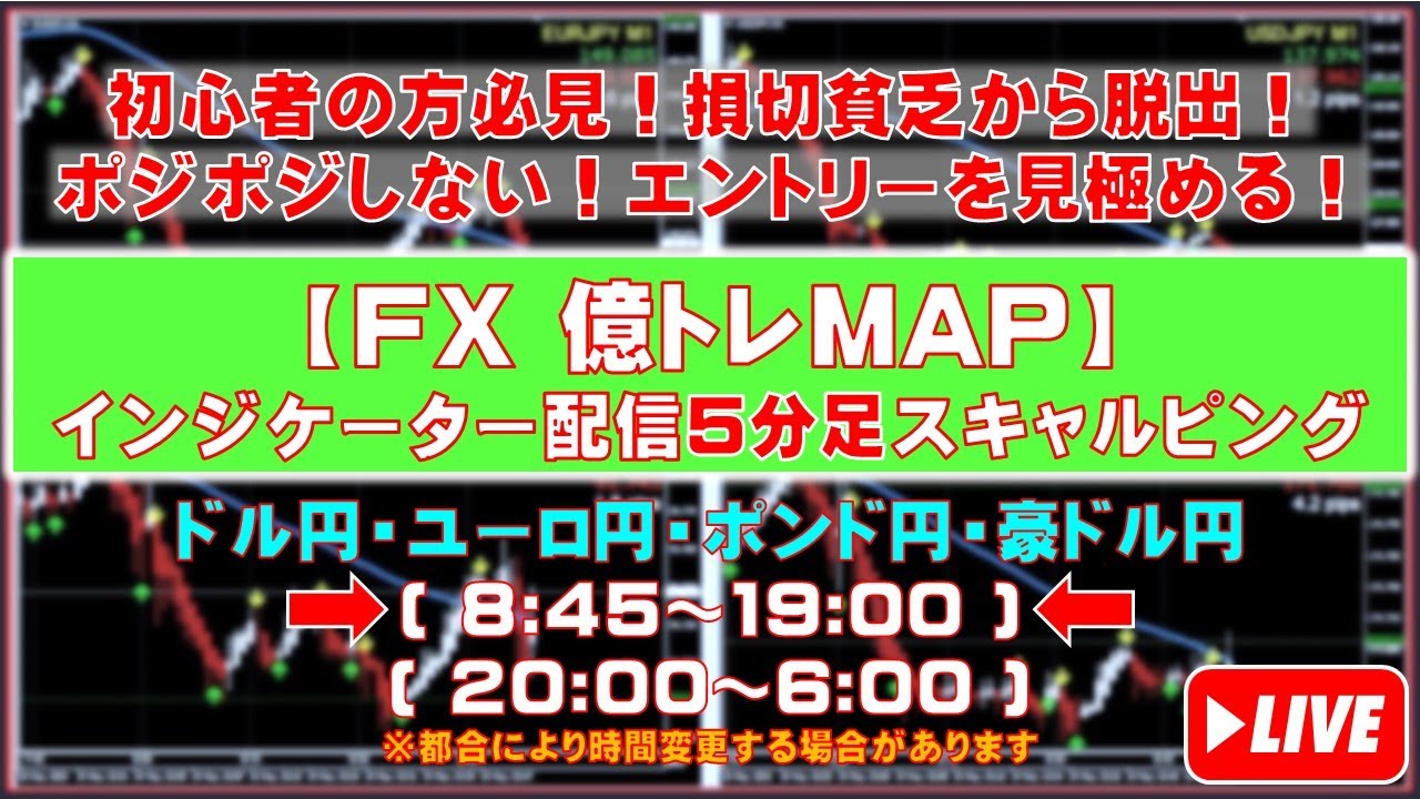 【FXライブ億トレMAP】5分足インジケーター配信スキャルピングトレーニング(クロス円:ドル/ユーロ/ポンド/豪ドル)(JPY:USD/EUR/GBP/AUD)2023.9.5 8:45~19:00