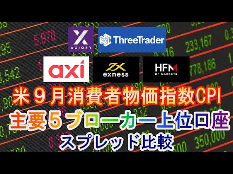 【海外FX】主要5ブローカーの上位口座で米消費者物価指数CPI指標時スプレッド比較【2023年9月13日米CPI】