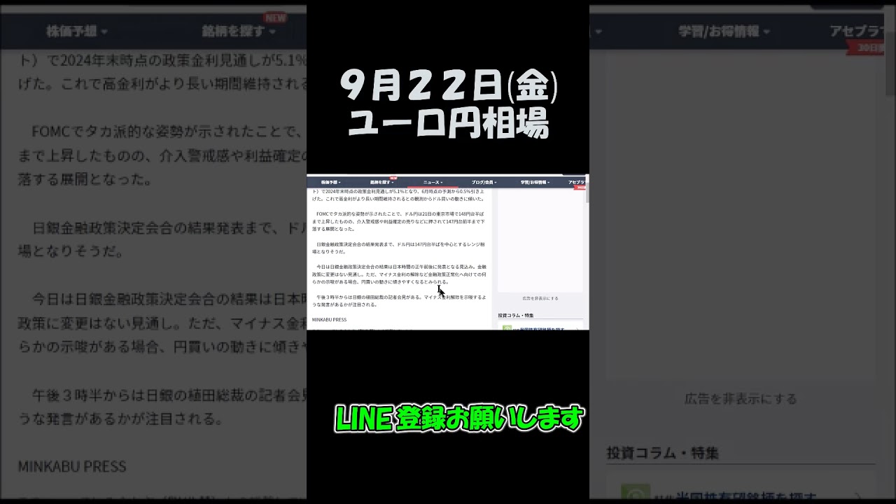 9月22日ユーロ円最新予想切り抜き【海外FX投資】 #shorts