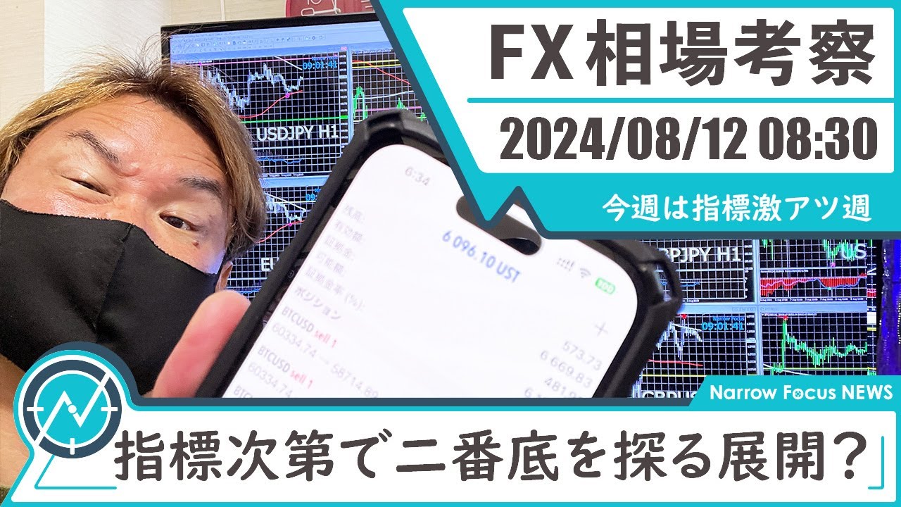 2024年 8月12日 海外FXトレーダーHAYAの相場考察【2番底を探るか、V字回復か!?今週の指標に注目!】