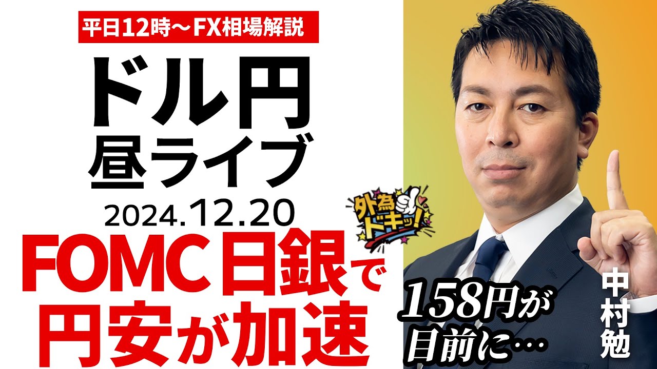 外為どっとコムが運営するFX情報サイト「マネ育チャンネル」に掲載されているレポートを元に、米ドル/円や豪ドル/円、英ポンド/円などの人気通貨ペアを生解説。昨日のニュースなどで変化した為替レートの値動きの振り返り、今日これからの見通しや、注目イベントなど分かりやすく説明します。外為どっとコム総合研究所の調査部に所属する研究員が、FX初心者向けに平日毎日12時ごろからライブ配信を行います。1カ月ほど継続して視聴することで、外国為替市場の「今」が分かるようになり、FXをしっかり始められるような構成を目指しています。