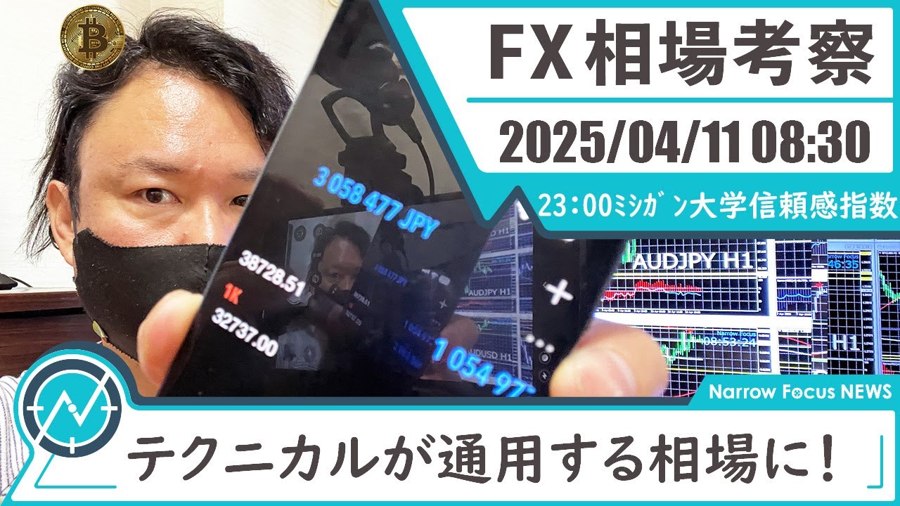 2025年 4月11日 海外FXトレーダーHAYAの相場考察【ドル安円高加速!GOLD最高値バブル継続中!】
