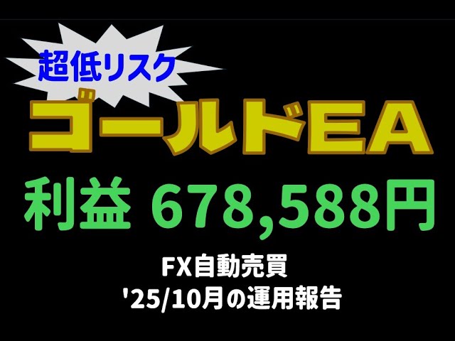 超低リスク ゴールドEA FX自動売買 2025年10月の利益の報告動画です。
